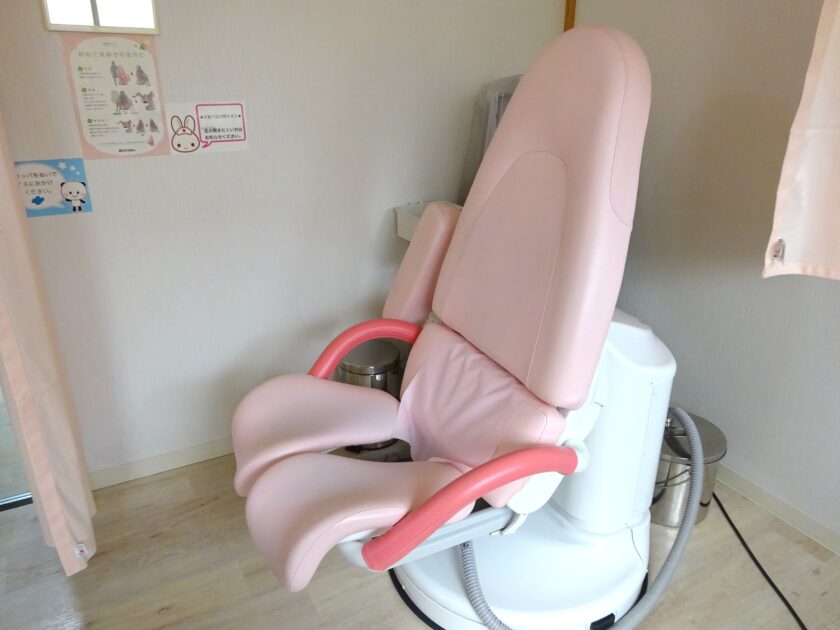 楽に上がれる回転式の内診台です。 股関節が開きにくい方はお教え下さい。